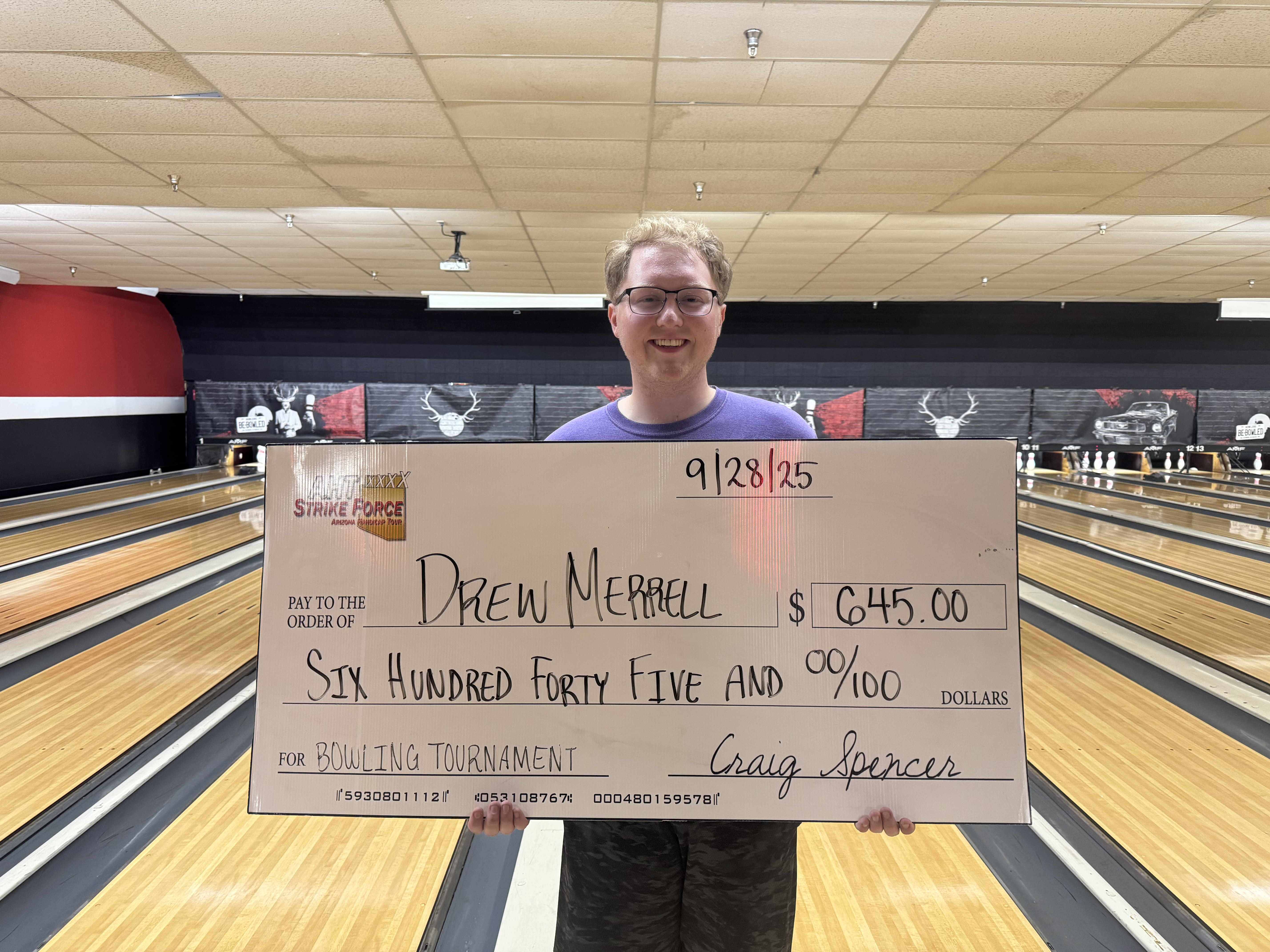 Our event this weekend was at AMF Mesa and we had a lower turnout. We had a total of 49 entries (40 qualifying and 9 economy parlays) with 16 prize winners and a 1 in 3.06 cash ratio, paying out $2,420 in prize funds. The players bowled on the 2024 U.S. Open - Pattern #3 that provided a very low scoring pace throughout the event.