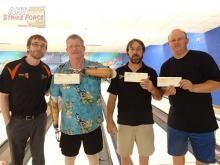 This event was an awesome one! We had all kinds of exciting finishes and firsts. The event had 82 entries (49 qualifying entries and 33 economy parlay entries), 21 cashers, a 1 in 3.9 cash ratio and paid out over $3,000.00 in main and side event prizefunds. The players bowled on the 40ft Brunswick Edge pattern that had some very interesting results. The scores for the entire tournament were much higher in the A division then any other division. Typically this is the opposite as the scores are usually higher in either the B or C divisions. However, scoring well on the pattern had a lot to do with playing the correct part of the lane which most of the A division bowlers seemed to be doing. However, the cut was also inflated by a very impressive performance that Jason Satterlee put on. He had a very nice 846 during qualifying that cemented that he was bouncing back from his slump and looking to win back to back events.